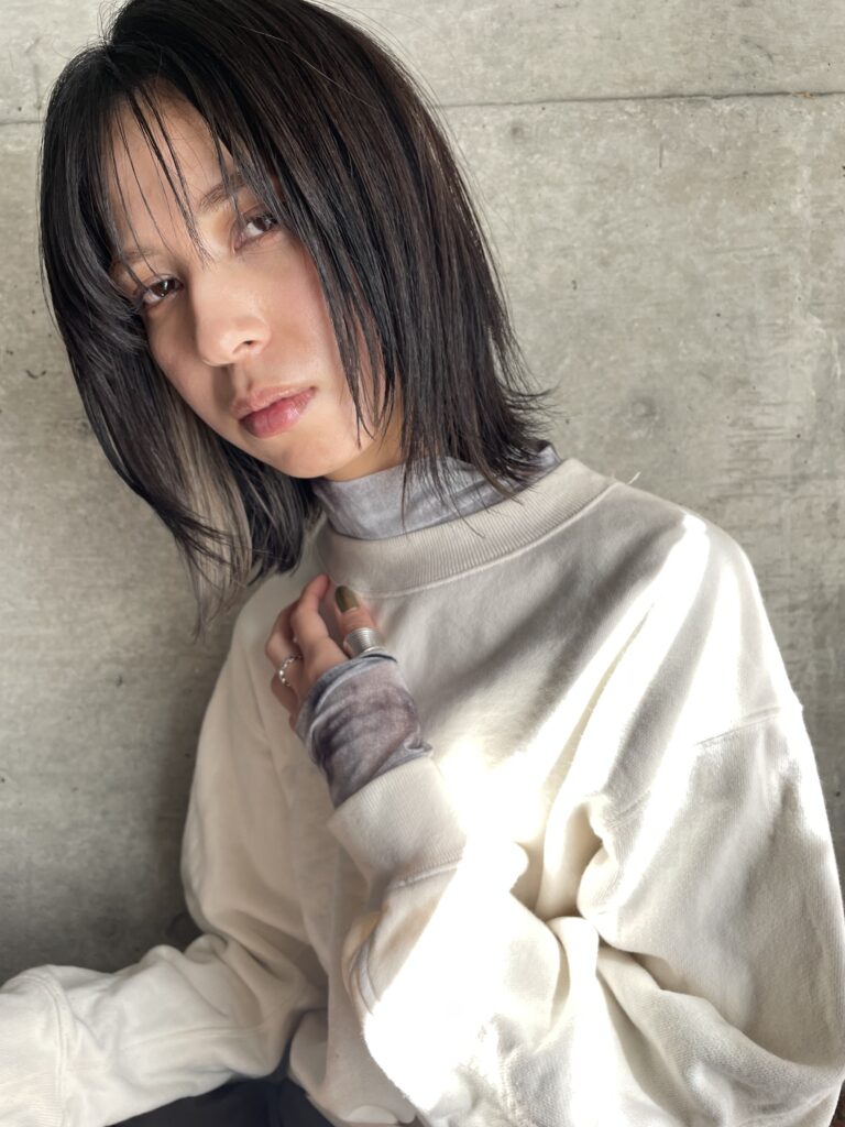 暗髪でも動きをつけて重たくなりすぎないようにしているのと、長さを切らなくてもこんなに雰囲気が変わるので形状って大切◎
